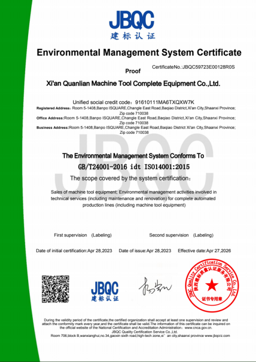 全聯(lián)成套全(quan)面通過(guò)環境管(guǎn)理體系(xi)認證證(zhèng)書