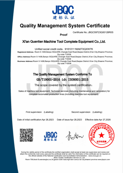 全聯成(cheng)套全面通(tong)過質量管(guan)理體系認(ren)證證書